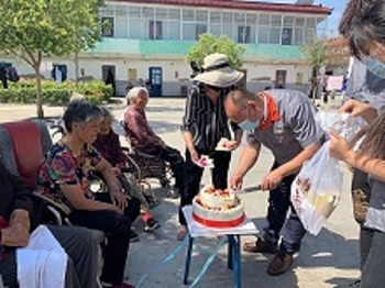 6月8日,迎著初升的朝陽,五星鋁業副總經理孟建君帶領部分員工來到重陽老年公寓看望老人,并為老年公寓6月份過生日的老人準備了精美的生日蛋糕,大家共同為老人們唱起了生日歌,在眾人的祝福聲中,孟總為老人們切開蛋糕,分享甜蜜。隨后,為老人們送上了米、面、油等生活用品,并陪老人們聊天、談心,了解他們的健康、生活狀況和日常娛樂活動。院里不時傳出歡聲笑語,洋溢著一片歡樂祥和的氣氛。這里沒有昂貴的禮物,卻有真誠的祝福與關愛,也溫暖了老人們的心。